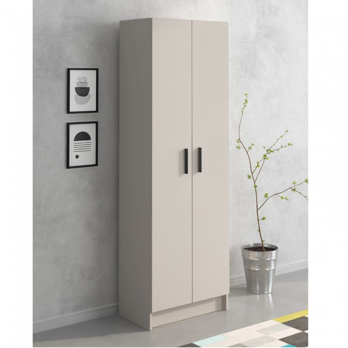 Visualmente, el Mueble multi AURA 2p destaca por sus líneas limpias y minimalistas. Las puertas del mueble están equipadas con tiradores en color negro, que proporcionan un contraste atractivo y un toque de modernidad. Con unas dimensiones de 180 cm de alto, 60 cm de ancho y 34.4 cm de largo, este mueble se adapta a espacios estrechos, ofreciendo una solución de almacenamiento sin ocupar demasiado espacio. Además, su diseño vertical permite aprovechar al máximo la altura de la habitación.