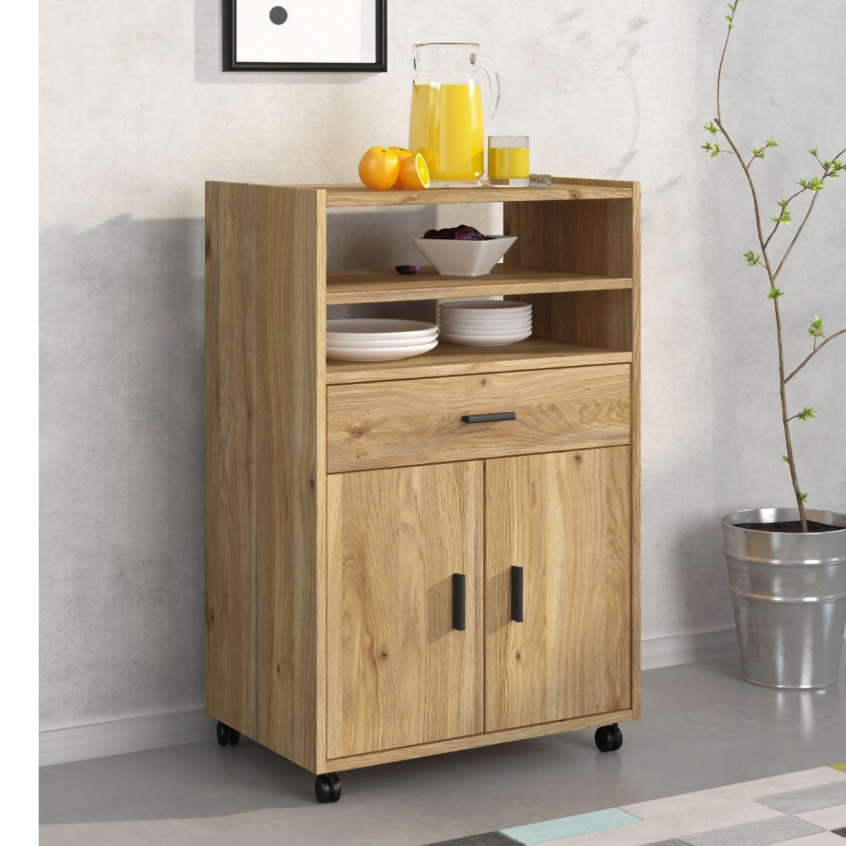 Otra característica relevante es su capacidad de almacenamiento. El mueble cuenta con un cajón central, ideal para utensilios y accesorios de cocina, y dos puertas que ocultan un espacio amplio para guardar otros elementos. Con un diseño que combina estética y funcionalidad, el AURA se adapta a tus necesidades, facilitando el acceso a lo que necesitas en tu cocina.