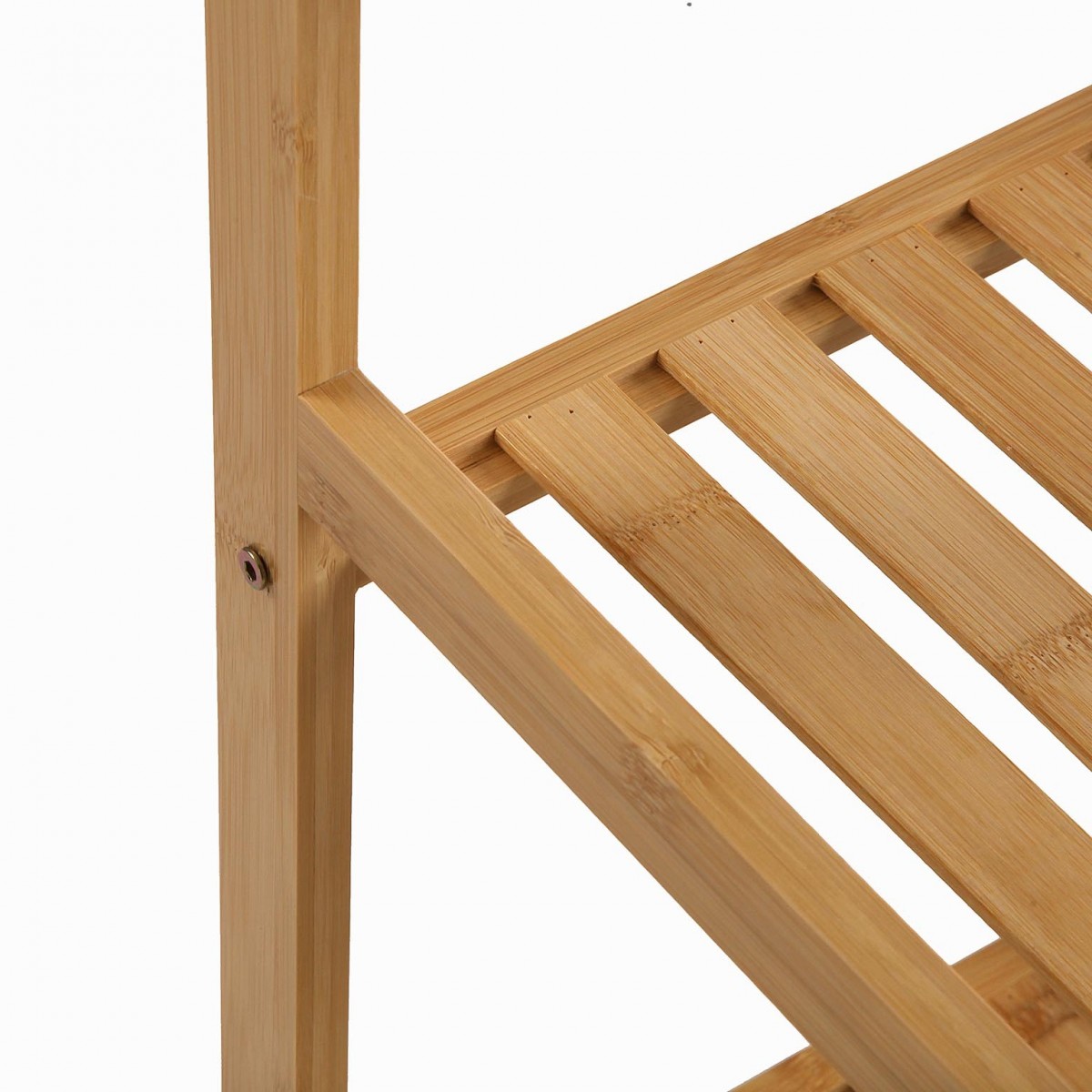 - Acabado: Bambú natural y baldas blancas
