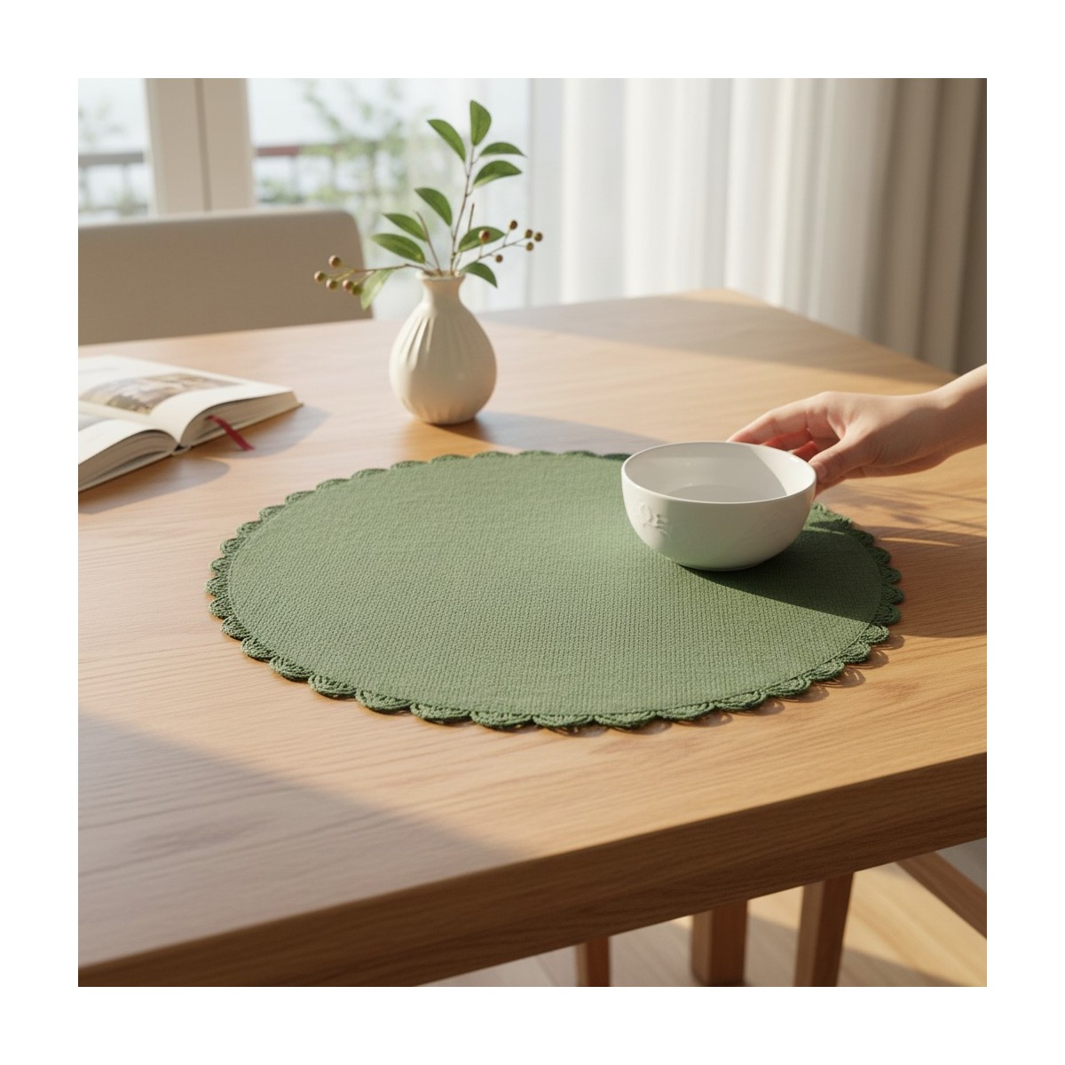 Descubre el salvamantel REDO verde, una pieza que combina funcionalidad y estilo en tu mesa. Este salvamantel, de forma redonda y en un elegante tono verde, es perfecto para realzar la presentación de tus platos. Su diseño sencillo pero sofisticado lo convierte en un complemento ideal para cualquier ocasión, desde cenas informales hasta celebraciones especiales. La textura del material aporta un toque de calidez y naturalidad, haciendo que cada comida sea aún más agradable.