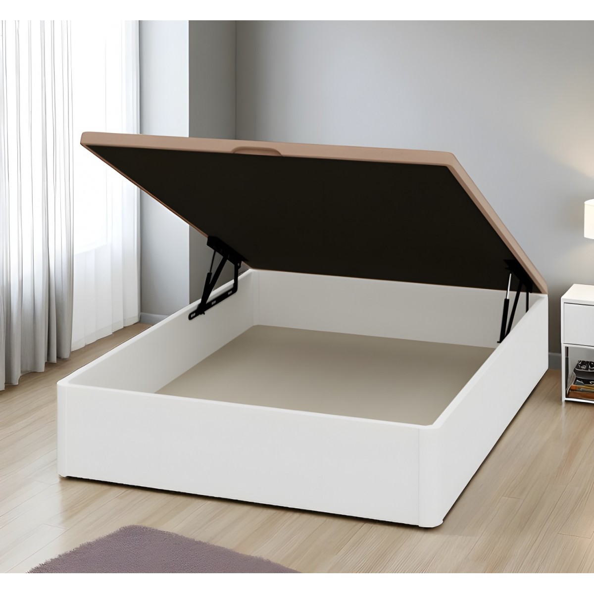 Presentamos el Canapé 222 blanco, una solución ideal para complementar cualquier modelo de colchón. Su diseño elegante y minimalista se adapta a diversos estilos de decoración, aportando un toque de modernidad a tu dormitorio. La estructura en color blanco resalta su aspecto luminoso, mientras que la tapa de acabado suave incorpora un hueco en como uñero, facilitando su apertura. Este canapé no solo es estético, sino que también ofrece funcionalidad al permitir el acceso a un amplio espacio de almacenamiento interior.