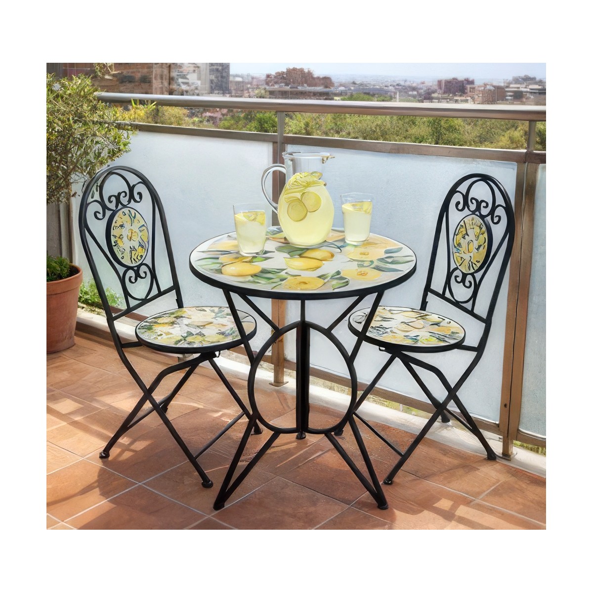 Descubre la mesa y las dos sillas LIMON, un conjunto ideal para disfrutar de tus momentos al aire libre. Este elegante set de la colección FORJA SETS TERRAZA combina funcionalidad y estilo, permitiendo que te relajes en tu terraza, balcón o jardín. Con un diseño atractivo y un acabado cuidado, esta combinación de mesa y sillas es perfecta para quienes buscan un toque fresco en su espacio exterior.