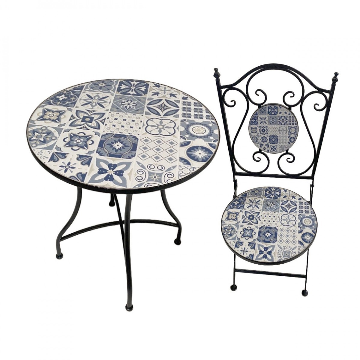 La mesa y sillas AZURITA son la opción perfecta para aquellos que buscan un conjunto elegante y funcional para su terraza o jardín. Este set destaca no solo por su diseño atractivo, sino también por su robustez y comodidad. Con una estructura de metal negro, la mesa circular se complementa perfectamente con las sillas de respaldo alto, creando un ambiente acogedor y sofisticado. El uso de patrones en tonos azules y blancos en los asientos añade un toque decorativo que se adapta a diversos estilos de decoración exterior.