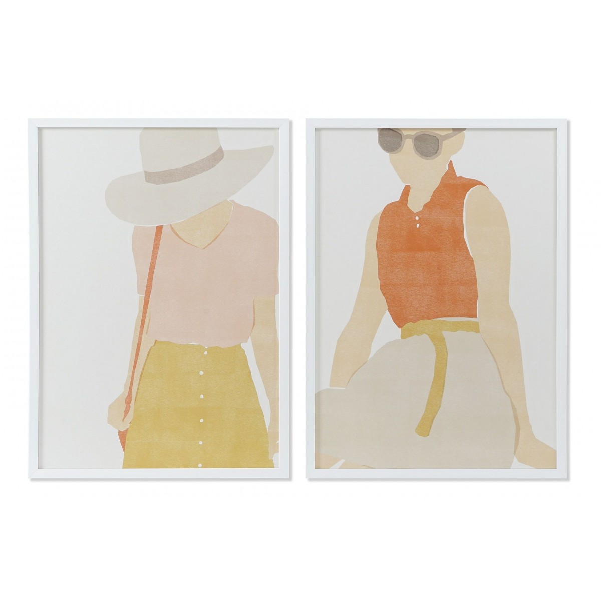 El Cuadro CRIS presenta una ilustración cautivadora de figuras estilizadas, destacando la moda y la elegancia. Los detalles se caracterizan por un uso sutil de tonos pastel que evocan una sensación de frescura y ligereza. Enmarcado en un acabado blanco, el cuadro realza aún más la luminosidad de los colores, generando un efecto visual atractivo y acogedor que armoniza con diversas decoraciones.