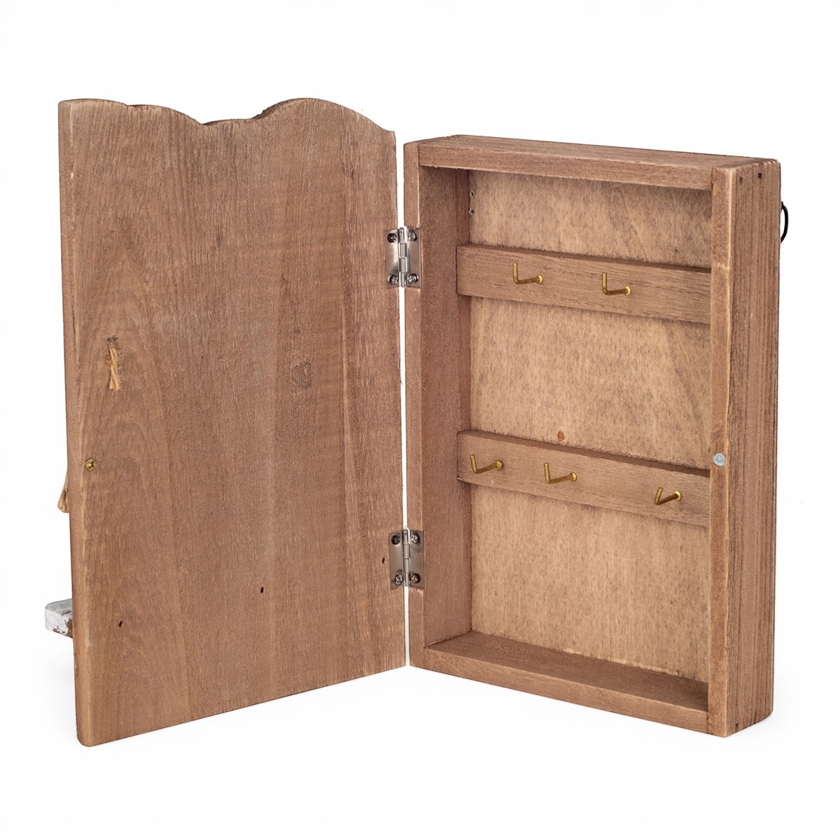 Entre las características técnicas del Cuelgallaves PAU, destaca su estructura robusta, que garantiza durabilidad y resistencia. Con un peso de 280 g, este producto es ligero y fácil de montar en cualquier pared. Incluye múltiples ganchos dorados en su interior para colgar llaves, lo que permite una organización óptima y accesible. La parte posterior cuenta con un sistema de fijación que asegura una instalación sencilla y segura.
