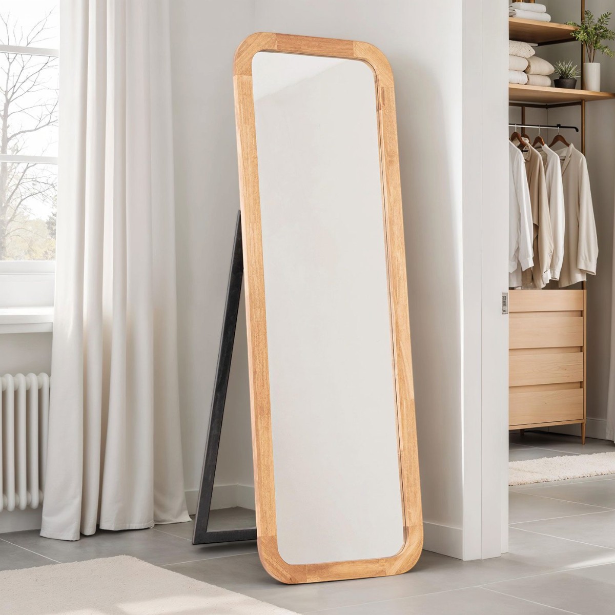 Visualmente, el Espejo ROBLE se distingue por su diseño elegante y minimalista. La forma rectangular con bordes redondeados suaviza el aspecto del espejo, permitiendo que se adapte armoniosamente en vestidores, dormitorios, salones o pasillos. Su gran tamaño permite reflejar la figura completa, creando una sensación de amplitud y luminosidad en el espacio. Además, su diseño de suelo facilita su colocación, permitiendo que se mantenga de pie sin necesidad de fijarlo a la pared.