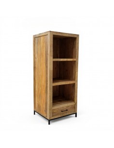 En cuanto a sus características técnicas, la Librería CALCUTA 120 ha sido elaborada con materiales de alta calidad, garantizando resistencia y estabilidad. Sus dimensiones son ideales para adaptarse a diferentes espacios, sin sacrificar el estilo. La madera maciza utilizada en los estantes presenta un acabado suave, resaltando las vetas naturales y el color cálido que aporta un ambiente acogedor. La estructura metálica en color negro no solo asegura la durabilidad del mueble, sino que también lo hace destacar en cualquier decoración.