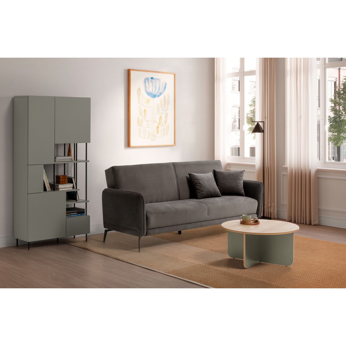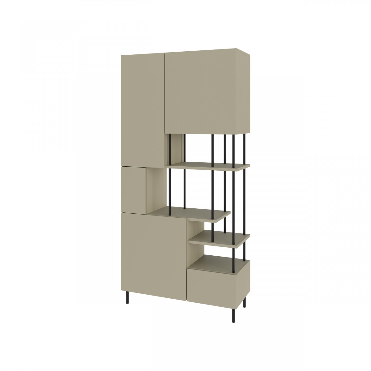 La Estantería PERLA 87 es una pieza de mobiliario que combina elegancia y funcionalidad, ideal para cualquier espacio contemporáneo. Su acabado en un suave tono crema aporta luminosidad y calidez, mientras que los detalles en negro, visibles en su estructura, crean un atractivo contraste que realza su diseño moderno. Este equilibrio entre colores y formas hace de la estantería un elemento decorativo que se integra perfectamente en diversas estancias, desde salones hasta oficinas.