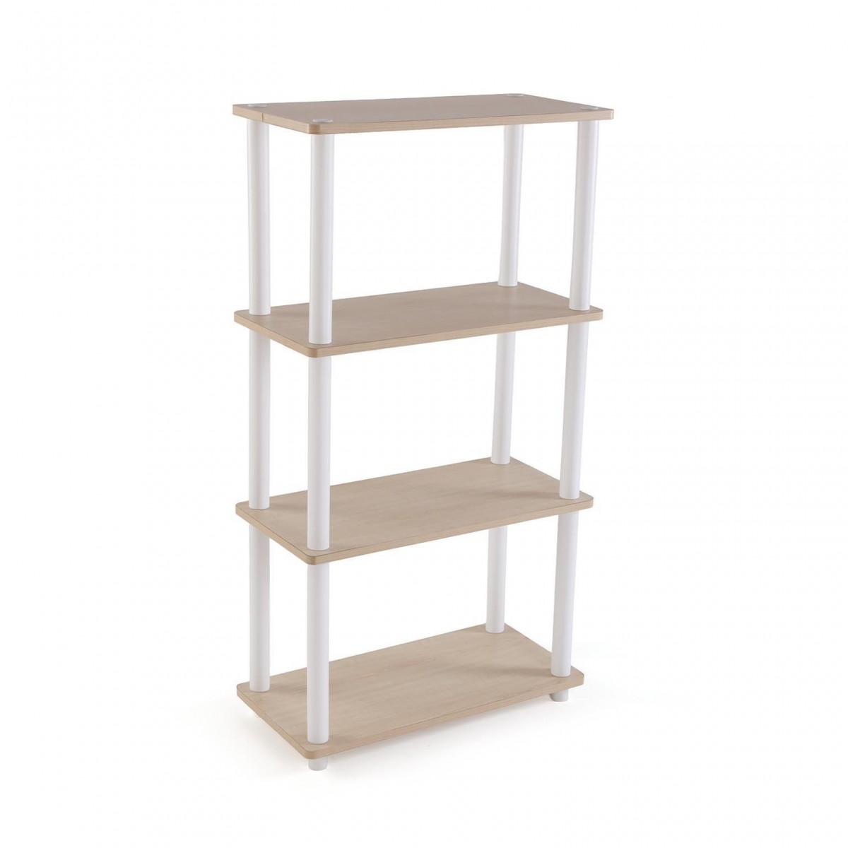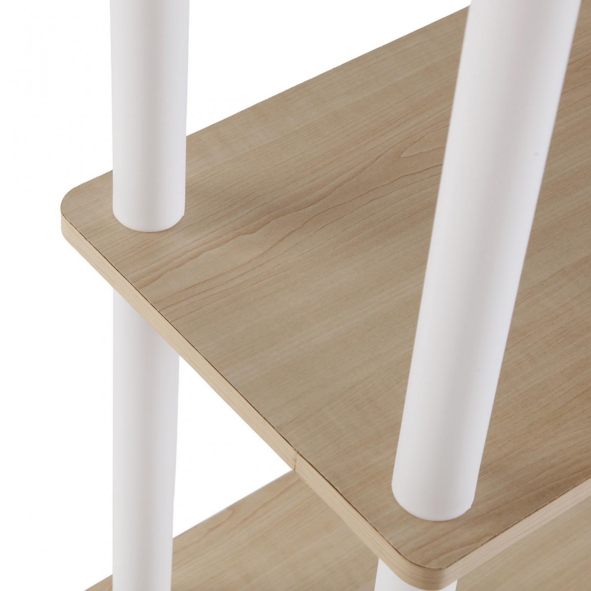 Visualmente, la estantería presenta cuatro estantes amplios que permiten organizar y exhibir una variedad de objetos, desde libros y decoraciones hasta utensilios de cocina. Los estantes están fabricados en madera MDF, proporcionando tanto resistencia como ligereza. Los soportes de plástico blanco añaden un toque contemporáneo, al tiempo que aseguran la estabilidad del mueble. Con un peso de solo 8.2 kg, es fácil de mover y reubicar según tus necesidades.