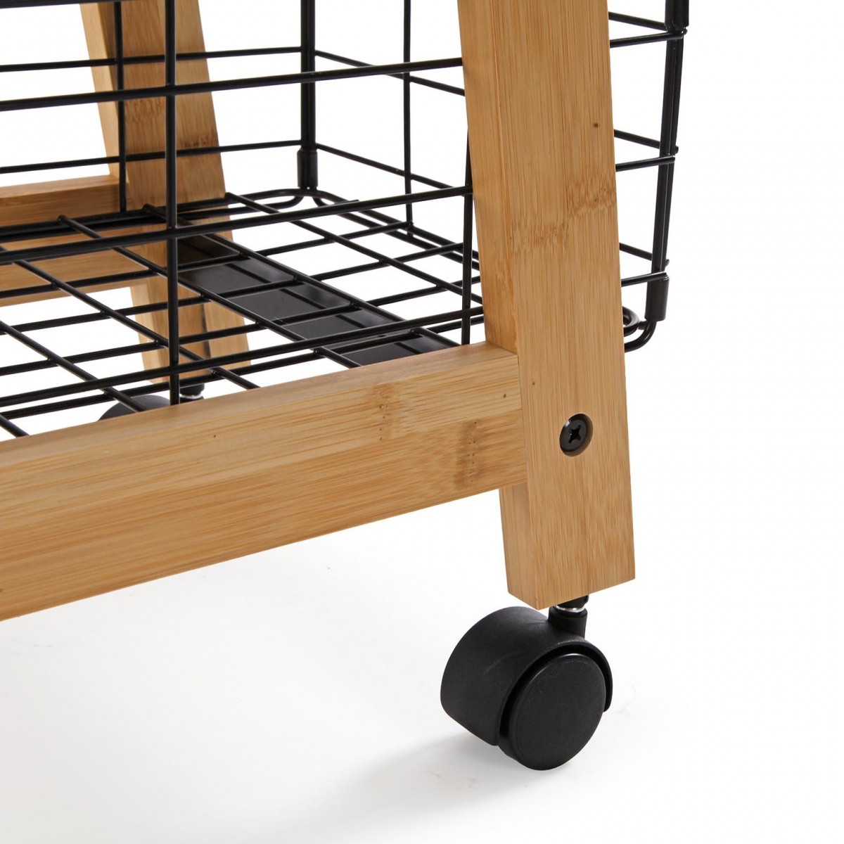 Visualmente, la estantería se destaca por sus cestas de metal negro, que contrastan elegantemente con la calidez del bambú. Cada cesta está diseñada con una malla abierta, lo que permite ver fácilmente el contenido, facilitando así la organización. Además, su acabado liso y natural del bambú proporciona un toque acogedor, ideal para cualquier entorno, ya sea en la cocina, el baño o el salón.