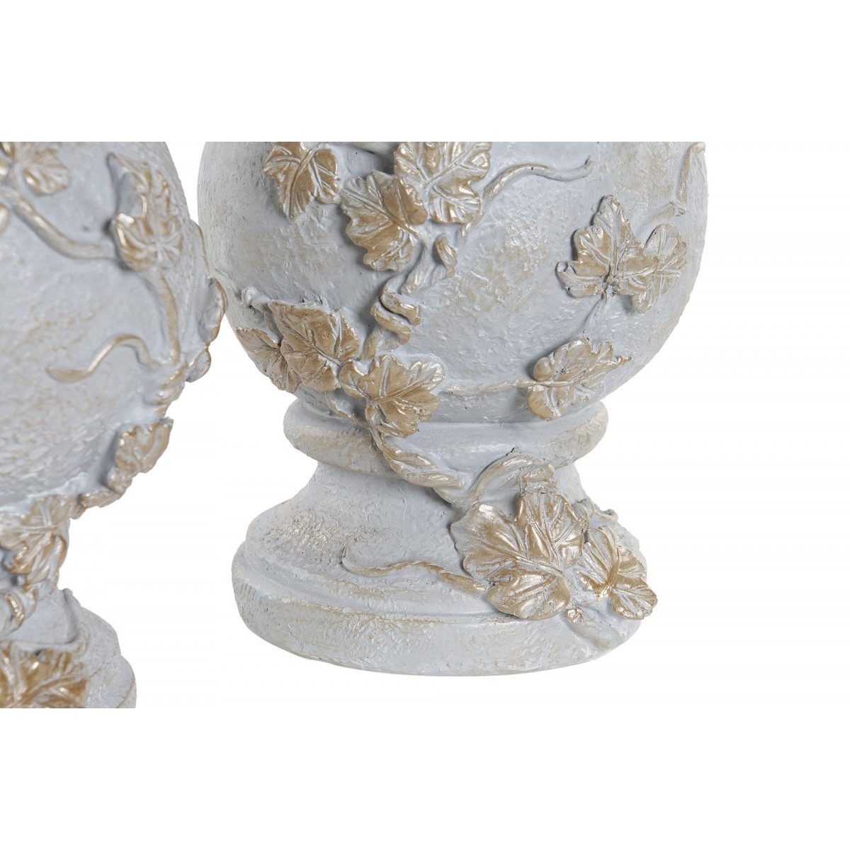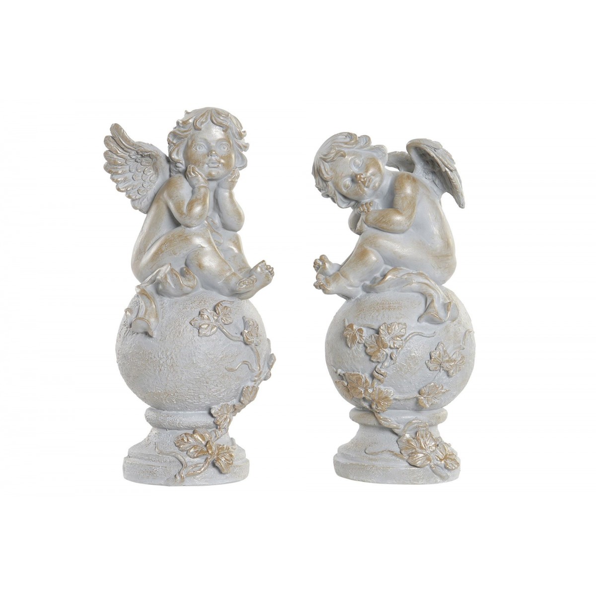 Fabricada en un material resistente, la figura ANYELITO no solo es visualmente atractiva, sino que también garantiza durabilidad. Su base esférica, adornada con motivos de hojas, proporciona estabilidad y un toque de sofisticación. Las texturas, que imitan el acabado de la piedra, añaden un aire de naturalidad a la pieza, haciendo que se integre con facilidad en diferentes estilos decorativos.