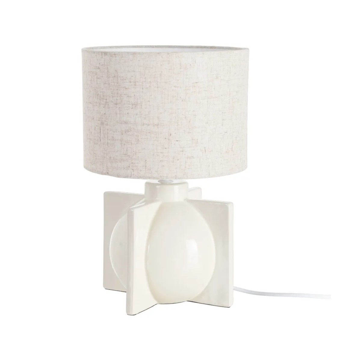 La Lámpara TIKI es una pieza elegante y funcional que se integra a la perfección en cualquier ambiente. Con un diseño contemporáneo y minimalista, esta lámpara aporta un toque de sofisticación a tu hogar, ya sea en el salón, el dormitorio o en un espacio de trabajo. Su base de cerámica, con un acabado blanco brillante, contrasta armoniosamente con la pantalla de tejido y PVC, que presenta un tono neutro que permite una difusión suave de la luz, creando un ambiente acogedor y relajante.