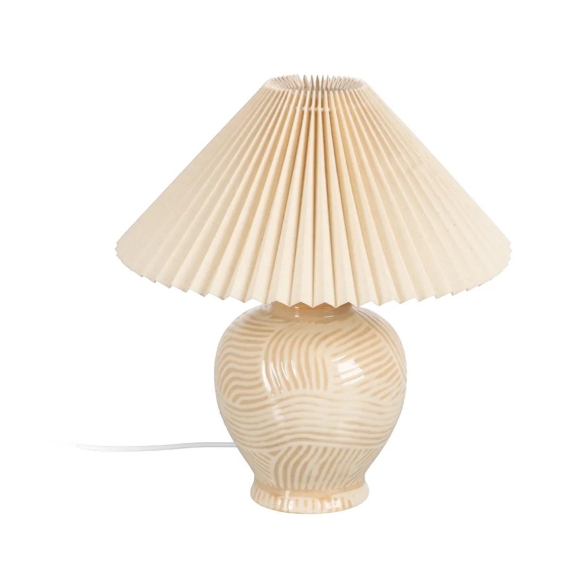 La Lámpara CHIN de 39 cm es una elegante adición a cualquier espacio, diseñada para aportar un toque de sofisticación y calidez a tu hogar. Su base de cerámica está cuidadosamente elaborada, presentando un acabado suave con un sutil patrón en relieve que añade un elemento visual interesante. La lámpara, con sus dimensiones de 39 cm de altura, 35 cm de ancho y 35 cm de largo, se adapta perfectamente a mesas de noche, escritorios o rincones acogedores, convirtiéndose en un punto focal de la decoración.