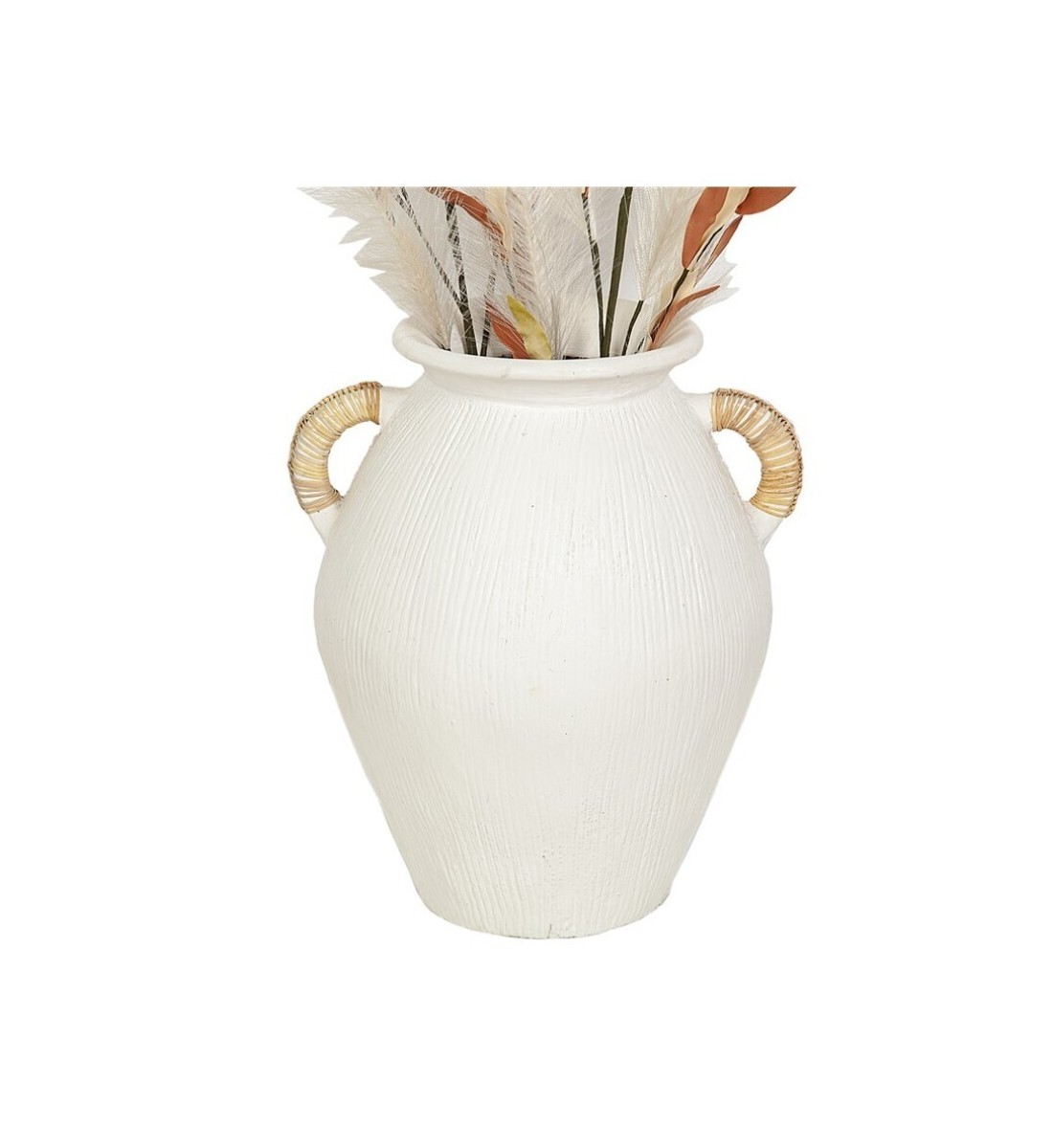 Descubre el Florero TERRACOTA asas mimbre 322, una pieza única que combina elegancia y funcionalidad en cualquier espacio de tu hogar. Su diseño estilizado presenta un acabado en color blanco, que aporta luminosidad y frescura a la decoración. Las asas de mimbre, que adornan el flanco de la pieza, añaden un toque rústico y natural, convirtiéndolo en un elemento decorativo ideal tanto para ambientes modernos como tradicionales.