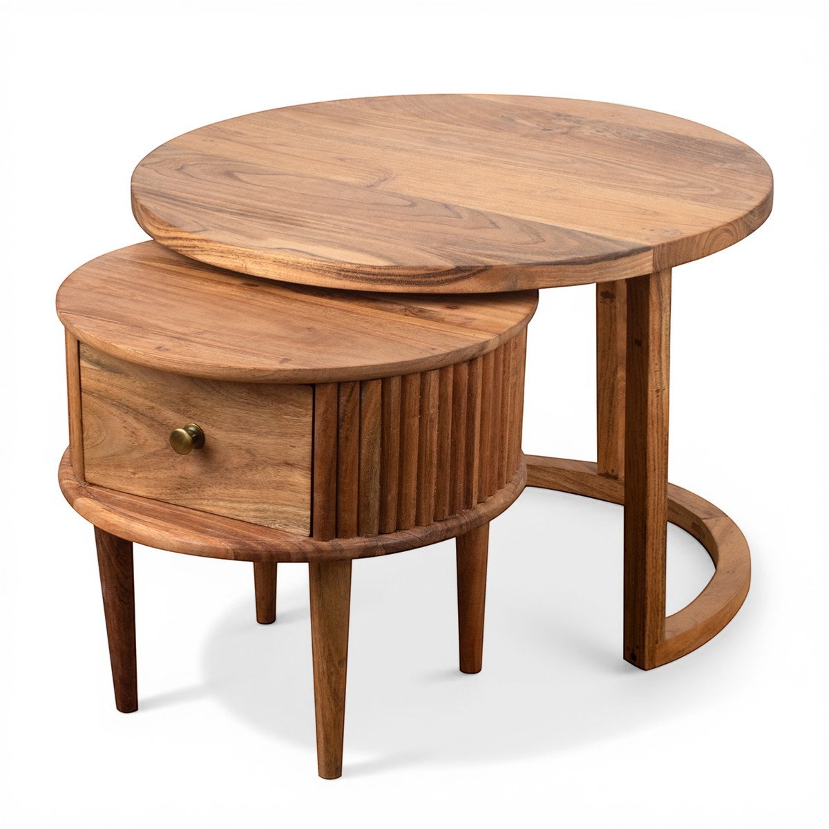Con un diseño práctico y atractivo, este set de mesas es ideal para salones, salas de estar o cualquier rincón que necesite un toque de estilo. Su madera de acacia no solo es visualmente impactante, sino que también es conocida por su resistencia a la humedad y su facilidad de limpieza. A continuación, te presentamos los puntos destacados: