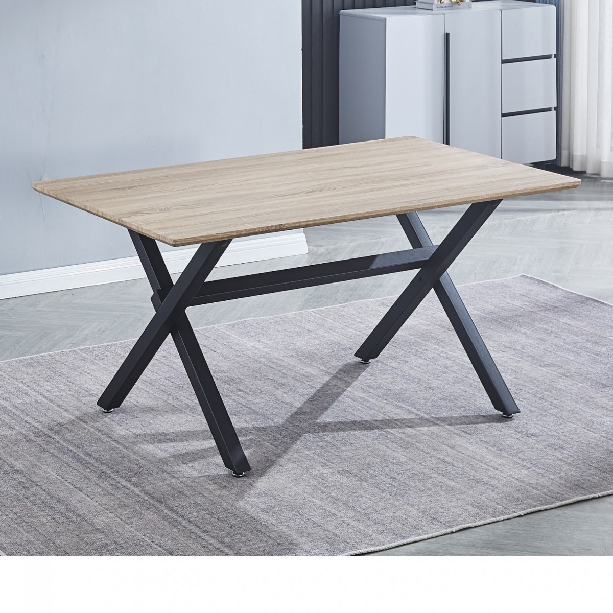 Visualmente, la Mesa comedor ROYCE destaca por su estética contemporánea. La superficie de la mesa presenta un acabado liso y uniforme, con tonos naturales que recuerdan a la madera, creando una atmósfera relajante. Las patas, con un diseño en forma de cruz, no solo ofrecen estabilidad, sino que también realzan el estilo industrial que se incorpora en los espacios modernos. Su forma y color permiten que la mesa se integre fácilmente en diversos estilos decorativos.