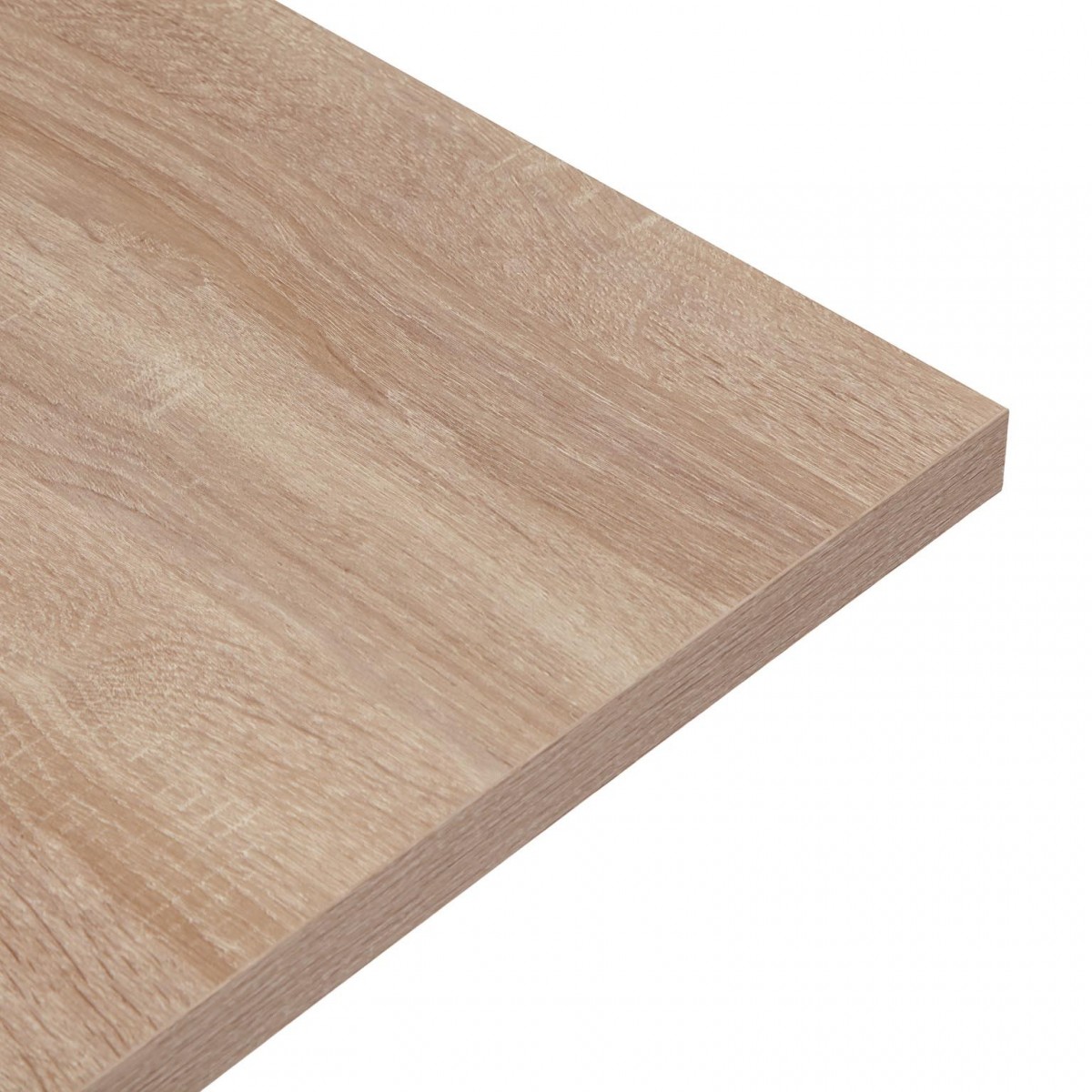 Visualmente, la Mesa SAGAS destaca por su elegante acabado en melamina que simula un aspecto de madera clara, lo que aporta un toque cálido y acogedor al entorno. Sus patas de metal negro, con un diseño robusto y moderno, no solo garantizan estabilidad, sino que también añaden un contraste atractivo con la superficie de la mesa. Este equilibrio de colores y materiales contribuye a su estética contemporánea, haciendo que se integre sin esfuerzo en cualquier espacio.