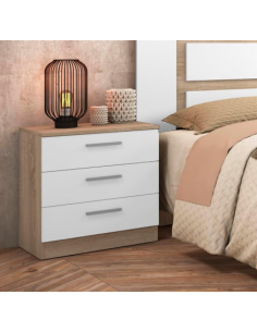 La Mesita 2 cajones SOTO rob-gr es la pieza perfecta para complementar tu dormitorio, destacándose por su elegante diseño nórdico que aporta un toque de modernidad y calidez. Sus líneas limpias y su acabado en tonos oscuros se combinan con la madera clara, creando un contraste visual atractivo. Esta mesita, ideal para colocar junto a la cama, no solo es funcional, sino que también se convierte en un elemento decorativo que realza la estética de cualquier habitación.