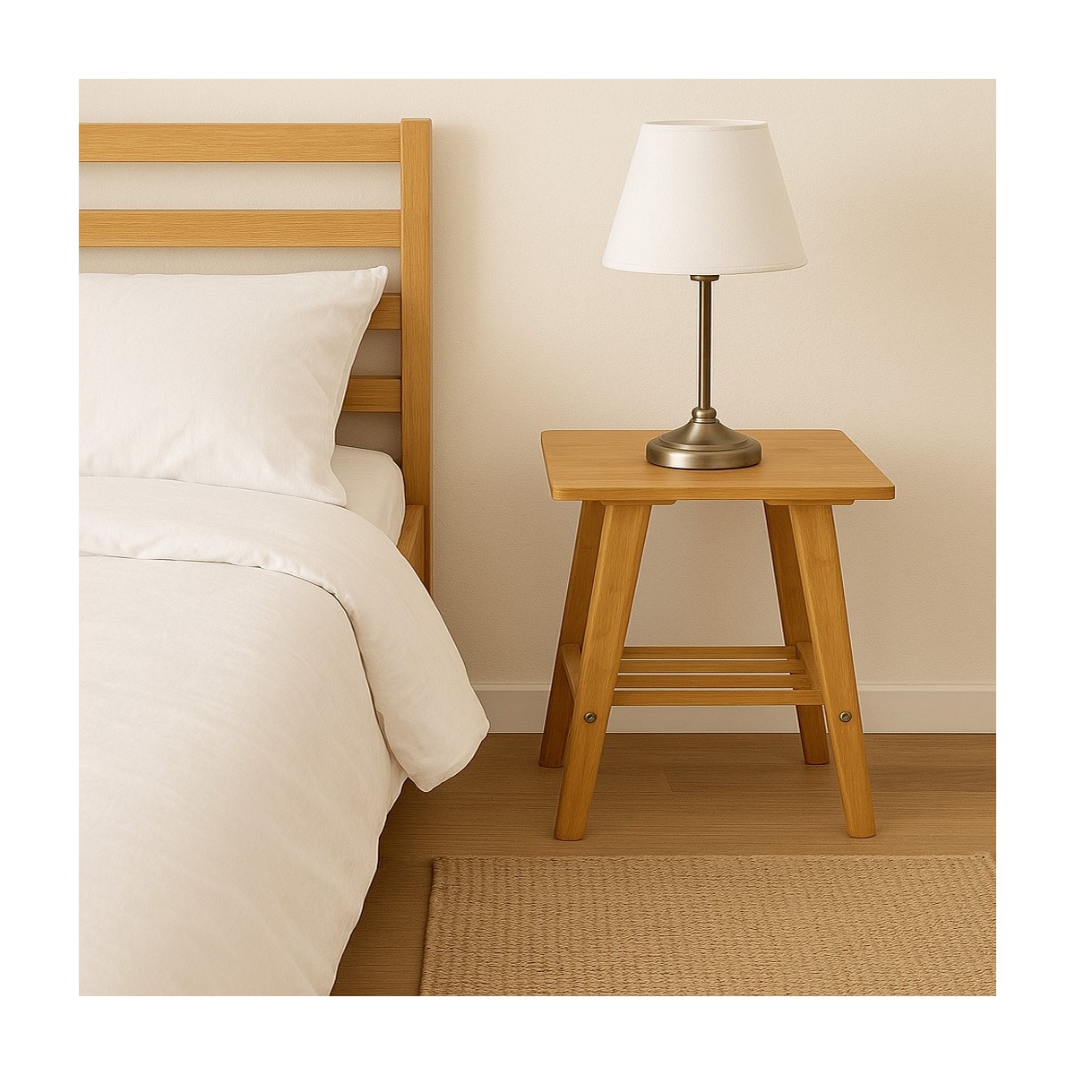 La mesita URAL es una pieza versátil y funcional que se adapta a cualquier entorno del hogar, ya sea en la sala de estar o en el dormitorio. Su diseño moderno e industrial se caracteriza por líneas limpias y minimalistas, lo que la convierte en un complemento ideal para una amplia variedad de estilos decorativos. Fabricada en bambú, este material no solo garantiza resistencia, sino que también aporta un toque natural y cálido a tu espacio.
