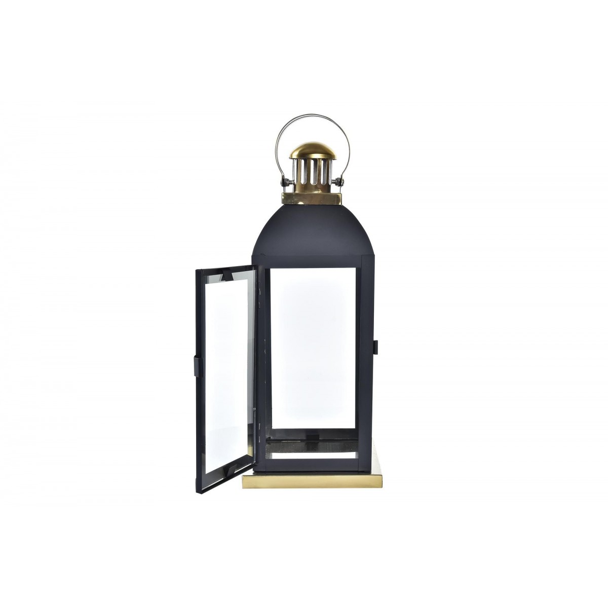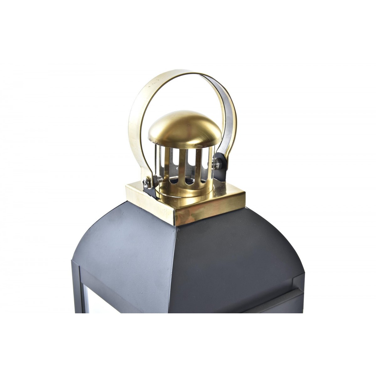Esta farola está fabricada en materiales de alta calidad, garantizando durabilidad y resistencia. Su estructura metálica proporciona estabilidad, mientras que el acabado en negro le otorga un estilo contemporáneo. La parte superior cuenta con un elegante diseño en forma de cúpula, adornada con un detalle dorado que complementa el conjunto. Además, su base robusta asegura que la farola se mantenga firme en su lugar.