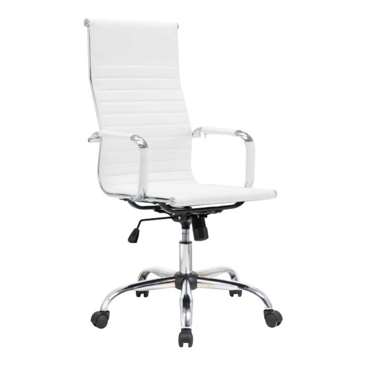 Visualmente, la Silla oficina AROA se caracteriza por su respaldo alto y líneas limpias, que promueven una postura erguida y cómoda. Los detalles en los laterales del respaldo y el asiento, con un diseño de costuras horizontales, aportan un aire contemporáneo. Los brazos de la silla, también en acabado cromado, ofrecen un apoyo adicional, mientras que su base de cinco ruedas permite una movilidad ágil y fácil por toda la oficina.