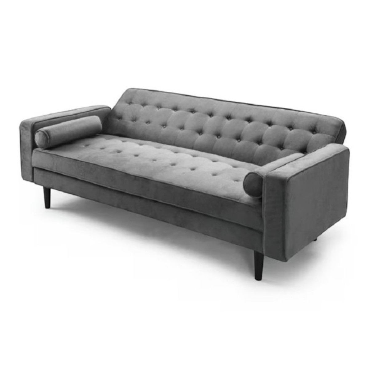 Descubre el Sofá cama PINK gris, una pieza versátil y elegante que se adapta a cualquier espacio de tu hogar. Su diseño moderno y minimalista lo convierte en el complemento perfecto para salones, habitaciones de invitados o espacios multifuncionales. Con un acabado en un suave tejido de tela velvet, este sofá ofrece no solo un aspecto atractivo, sino también una textura agradable al tacto. Además, su tonalidad gris se integra fácilmente con diferentes esquemas de decoración, aportando un toque de sofisticación a tu entorno.